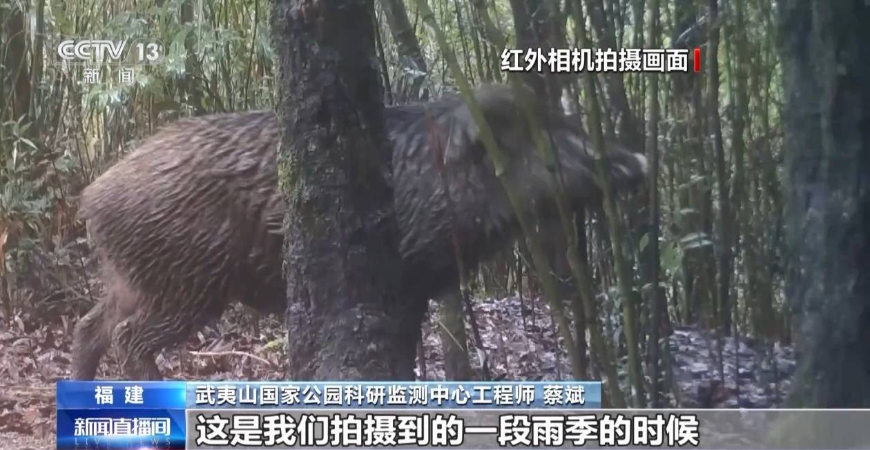 武夷山国度公园科研监测中心工程师 蔡斌:这是咱们拍摄到的一段雨季时一个野猪的视频,这只野猪它可能在地上寻找食品的期间嘴边粘了许多泥巴,它要找一个处所把嘴边的泥巴处理掉。于是它就在这个小竹子上,左蹭蹭右蹭蹭。
