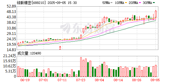 9月5日,统联精密大量交游成交320.48万股,成交额1.09亿元,占当日总成交额的16.43%开云体育,成交价33.86元,较阛阓收盘价48.7元折价30.47%。